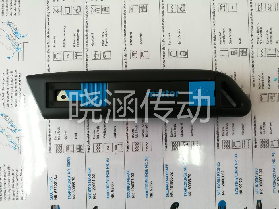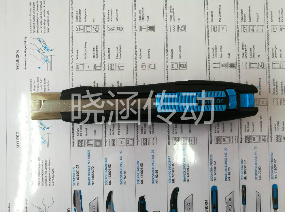 上海福名智實業(yè)有限公司,專業(yè)銷售德國原裝進口LUTZ刀片及MARTOR安全刀具,LUTZ GmbH &Co.KG和MARTOR KG是近百年的德國專業(yè)研發(fā)生產(chǎn)刀具企業(yè). 廣泛應(yīng)用于印刷、塑料、皮革、林業(yè)、橡膠、塑料、食品、鋁箔、煙草、卷煙、包裝材料、薄膜、電線、化纖、玻纖、紡織、木工、制袋機、造紙、鋁箔、冶金等方面,并在國際上享有一定的知名度,具有品種規(guī)格齊全、切削效果明顯、安全防護性高、更換頻率低、使用壽命延長等優(yōu)越的特點!